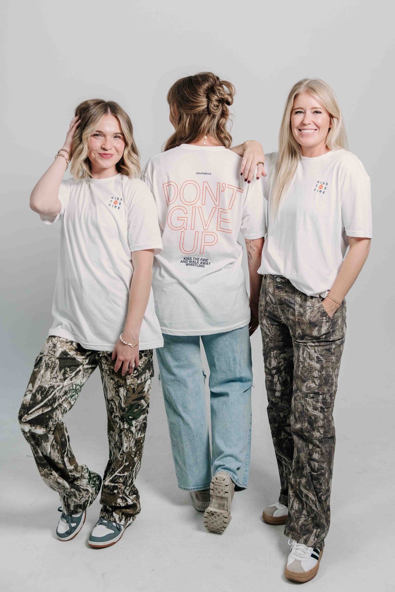 Bold, uplifting, and rooted in faith—the Kiss the Fire Tee (White) is a statement of hope and perseverance. Featuring the flame emblem on the front and a bold back print declaring “DON’T GIVE UP,” this tee is a reminder to keep fighting and trusting God through the fire.