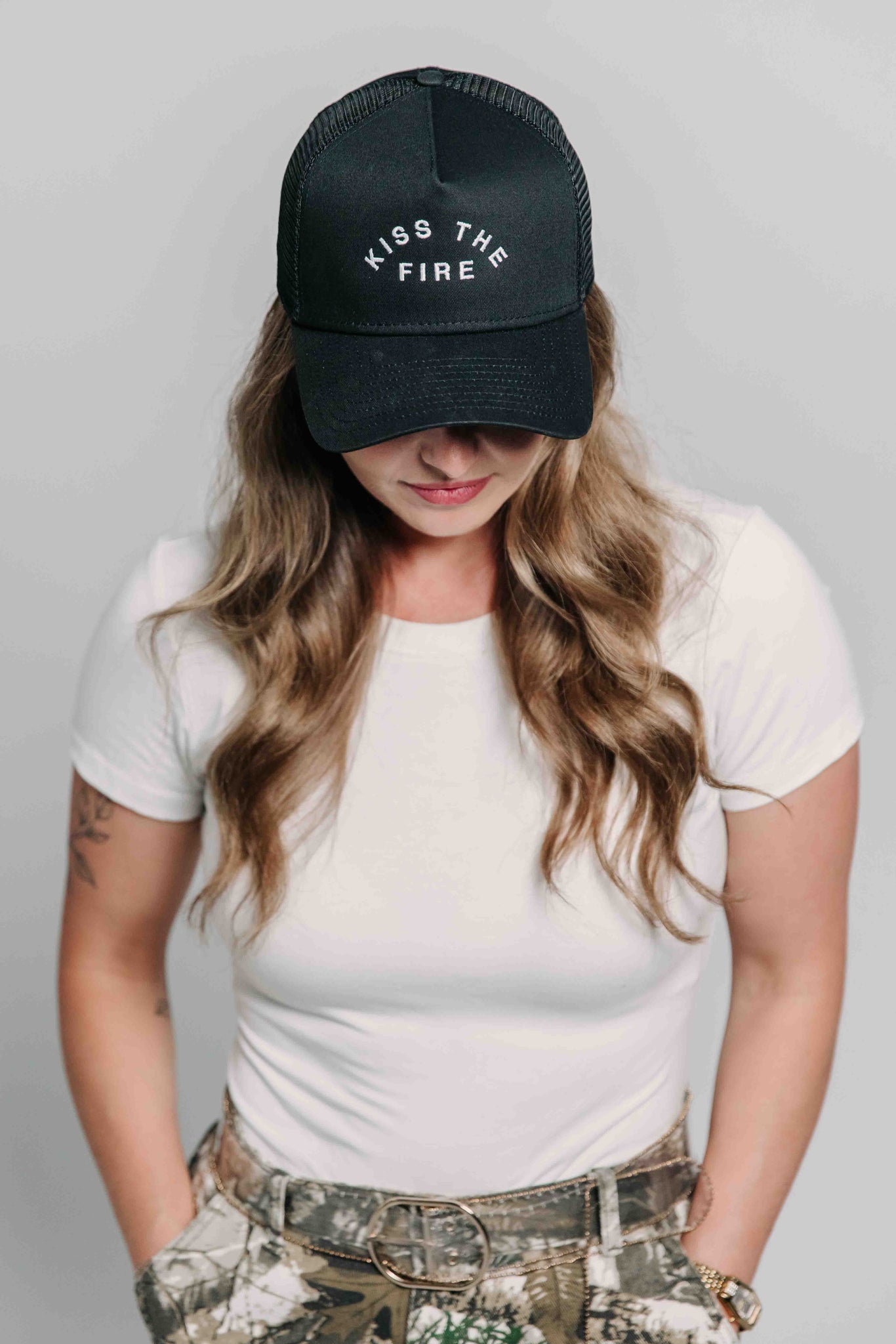 Timeless, bold, and built for everyday wear—the Kiss the Fire Trucker Hat is a classic cap with a message of strength and perseverance. With its embroidered front text and breathable mesh back, this hat blends style and comfort for any season.